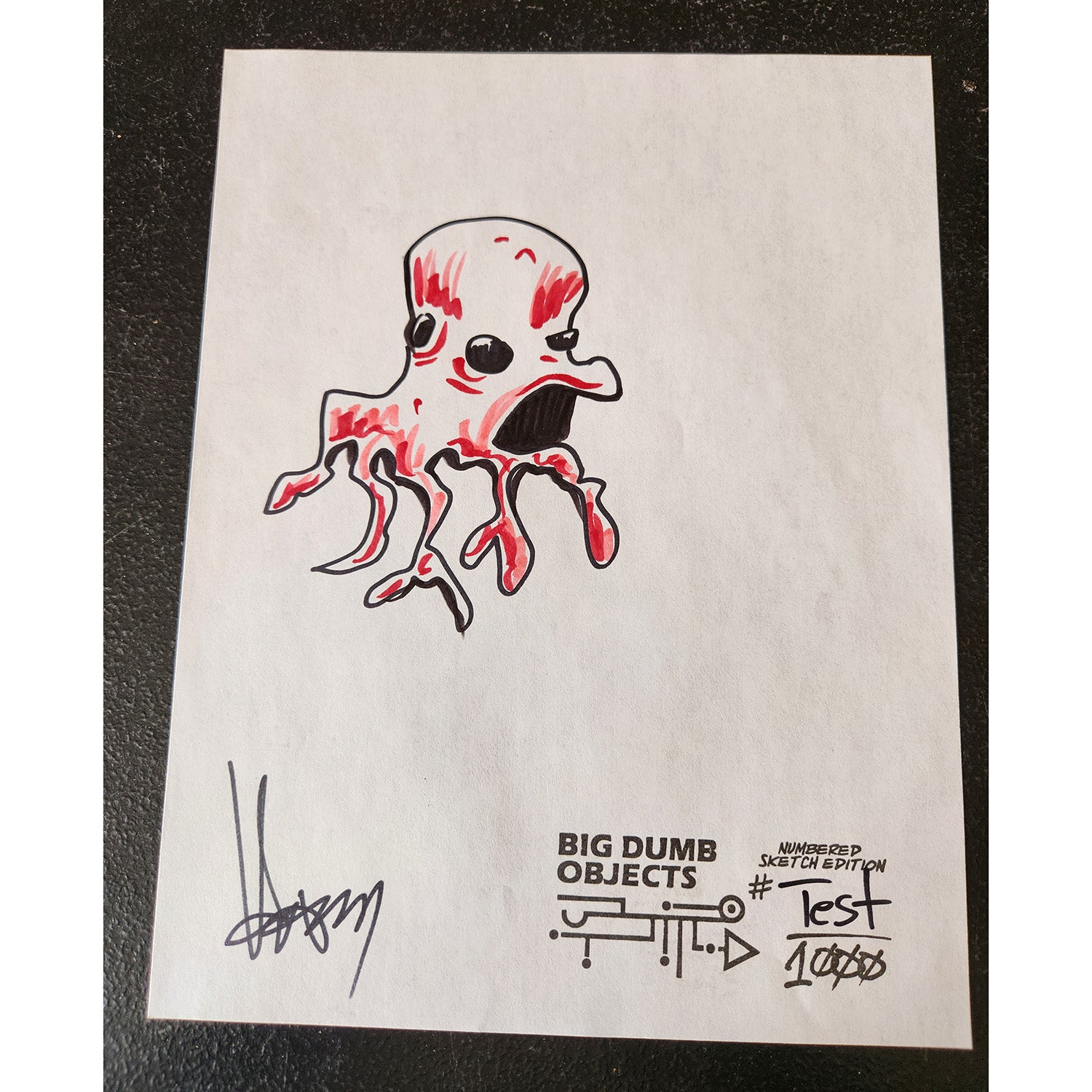 This is one of a series of test sketches that Howard drew with copic markers onto glossy paper for the Big Dumb Objects book sketching. This was one of the only times where all book sketches were done in color. This art measures 8.5x11.