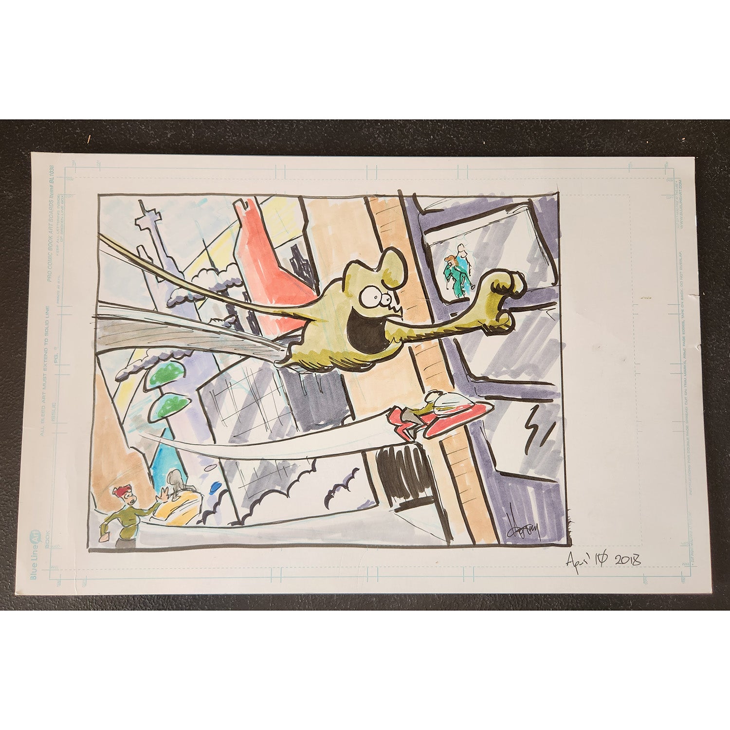 This concept sketch was created with copic markers on comic board for the cover of Schlock Mercenary Book 15: Delegates and Delegation It measures 11x17 inches. Discounted price because there are some small creases and damage around the edges. (See photos)