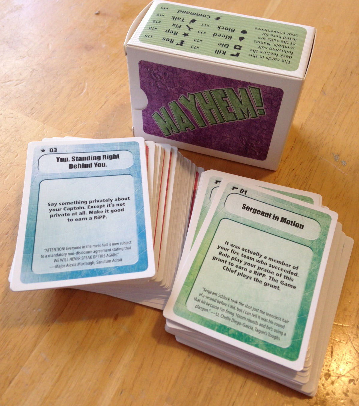 Engineered for speed and simplicity, the Planet Mercenary RPG lets you play out these adventures quickly with three six-sided dice and the 108-card Mayhem deck (Card deck included, dice sold separately) —a set of story-building, plot-twisting, occasionally explosive elements that can transform even a mundane encounter into a turning point for the entire mission. You and your group will weave magnificent, raucous, and probably hilarious adventure stories, and everyone will enjoy themselves …even when things go terribly wrong.