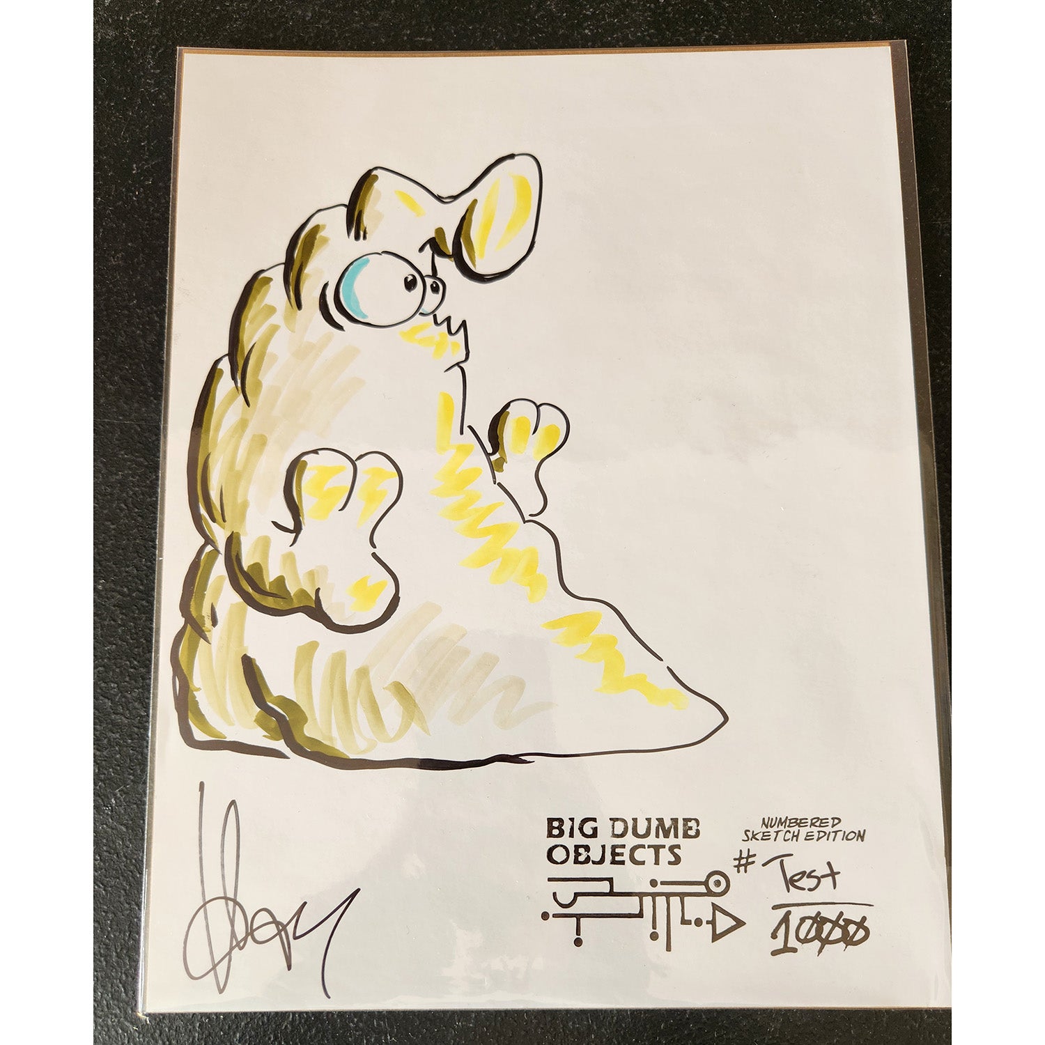 This is one of a series of test sketches that Howard drew with copic markers onto glossy paper for the Big Dumb Objects book sketching. This was one of the only times where all book sketches were done in color. This art features Schlock and measures 8.5x11 inches.